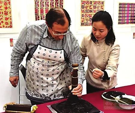 在展览开幕式上,来自苏州的桃花坞木版年画制作者为观众们讲解了这项工艺的历史和工艺流程,并且展示了桃花坞木版年画著名的代表作品《一团和气》的刷印过程。看到一张精美的作品在制作者熟练的操作之下显露真容,在一旁观看的西班牙观众个个跃跃欲试,纷纷要求自己尝试刷印一件《一团和气》。