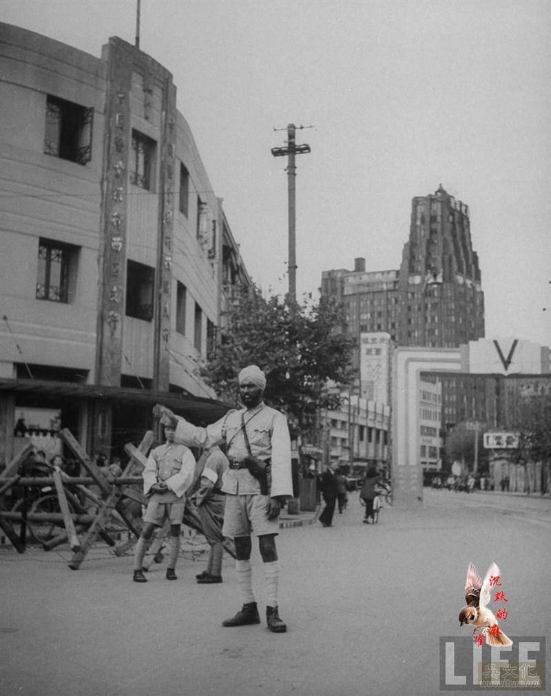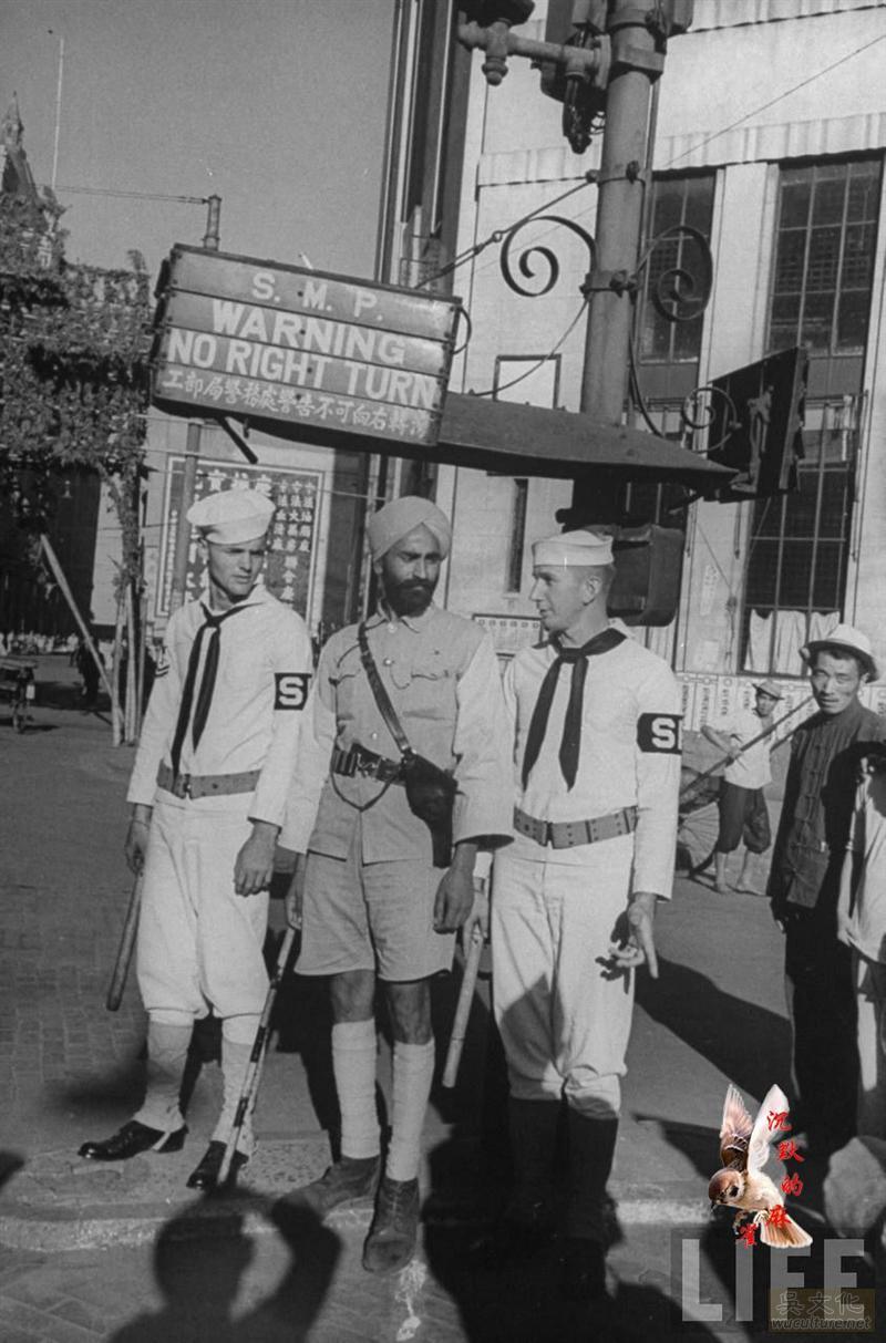 锡克教警察和站在两边帮助他指挥交通两个外国水兵。 |