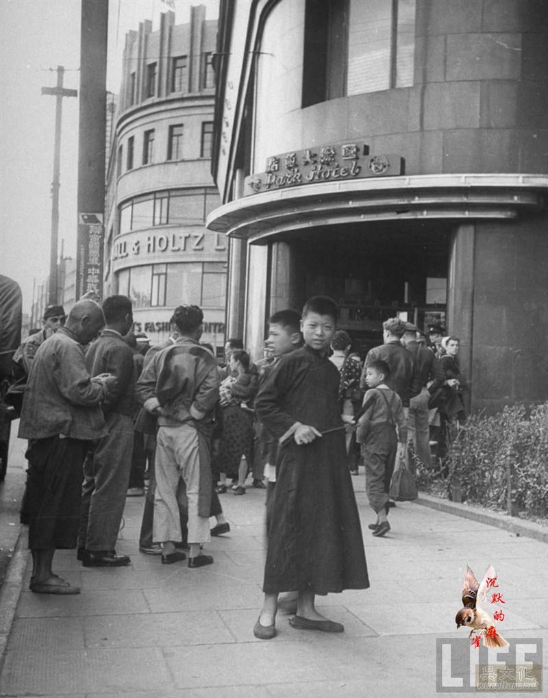 人们聚集在公园酒店(国际大饭店)门口。 |