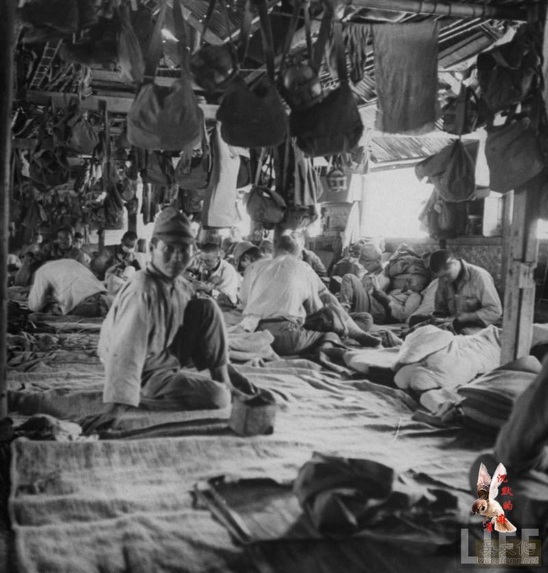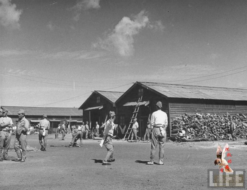 日本兵在他们的临时营地,即将被遣送回国。 |