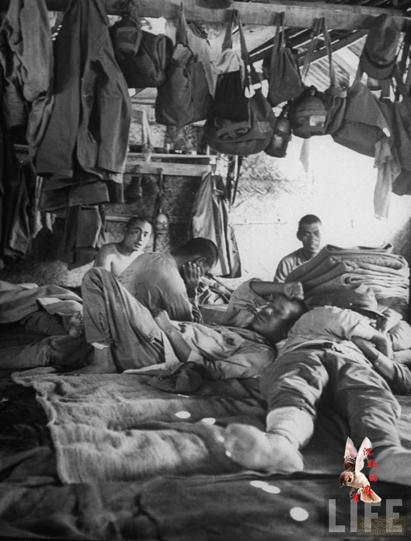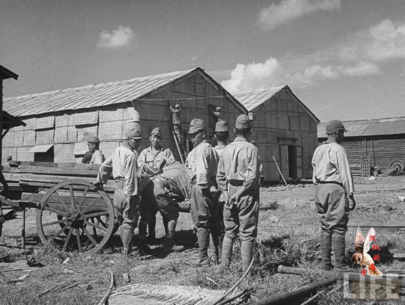 日本兵在他们自己的临时营地构建木制框架和苇席的营房2 |