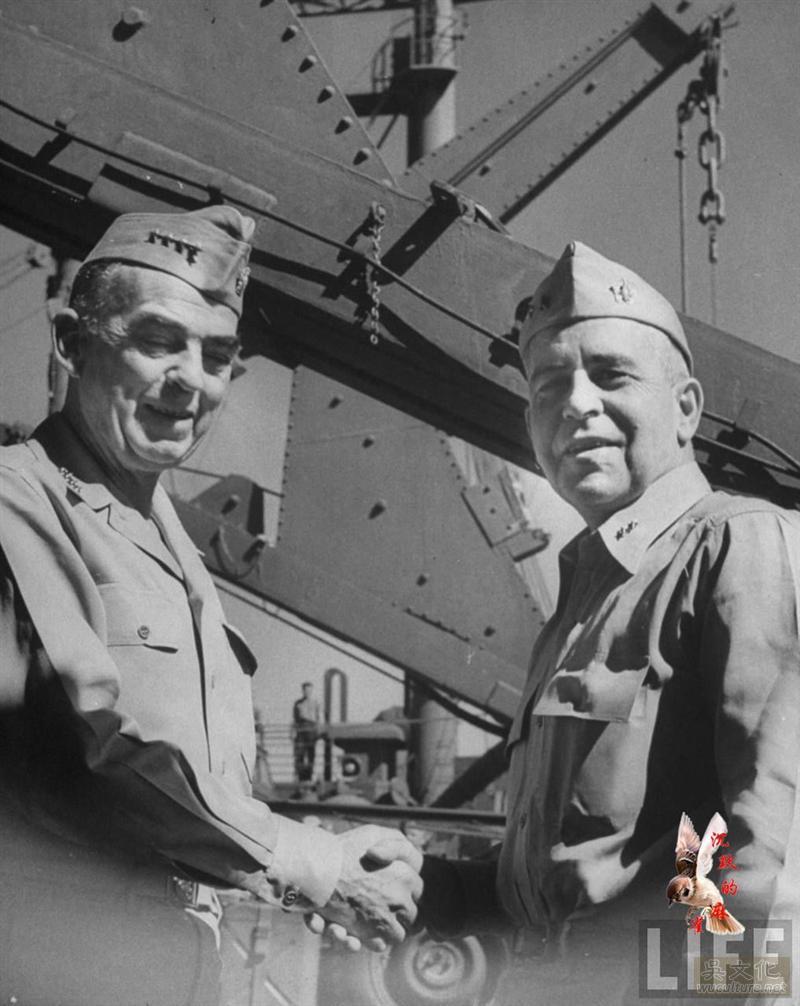 (L-R)海军上将托马斯·C.金凯德与查尔斯·特纳·乔伊将军。在其指挥下在长江巡逻。 上海 |