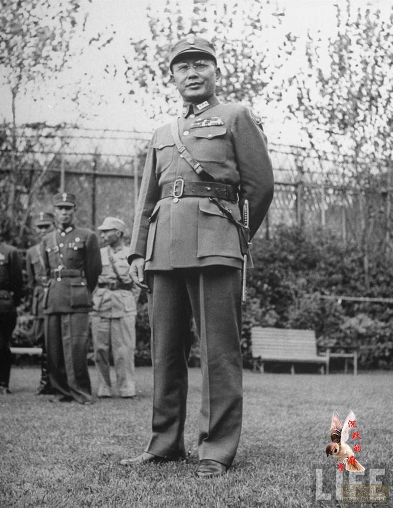 国民党军指挥官何应钦将军在他家宽敞的花园和其他国军将领. |