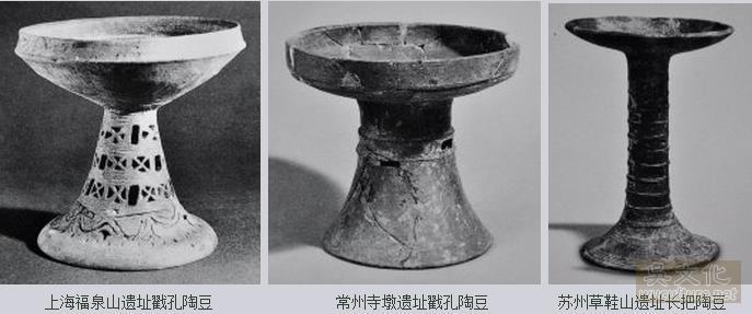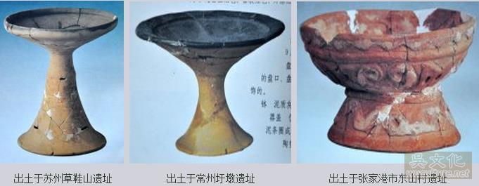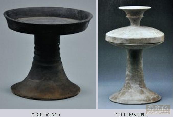 3、考吴陶。中国人使用陶豆当食器,源于太湖流域,至少有7000年历史。长江流域的河姆渡文化、马家浜文化,有大量陶豆出土。黄河流域的仰韶文化用盆、碗当食器,仰韶彩陶未见有豆。山东龙山文化有豆,形制与江南相仿,同属海洋文明,东夷终始与商周为敌。新石器时代在炊器上南、北不同,黄河流域用鬲、盆,长江流域用釜、鼎;在食器上,南北也不同。到了青铜时代,中原盛行七鼎、八簋、双豆、廿四豆,同良渚文明北上有关。