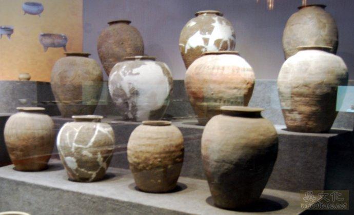 武进博物馆在阖闾城西南侧雅浦山包的石室土墩墓中发现成套葬具,有瓮、罍、罐、豆、碗、盆等组合。