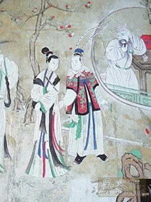 英国弥尔顿宅,位于英格兰剑桥郡。1744年费滋威廉伯爵三世成婚,由其安娜夫人引荐当时德高望重的英国建筑师亨利·福利特克洛特受聘负责弥尔顿宅的扩建整修,“中国卧室”一并规划完成。18世纪以来,弥尔顿宅保存了原貌,其中包括位于二楼的“中国卧室”的四面墙壁贴饰大小不一、大多为110×64cm或70×90cm的画共81幅,而其中的苏州版木刻年画居多。苏州版木刻年画的墨版套印敷彩有三种类型,一种是色彩平涂,一种是以饾版的方法即渐层色泽表现衣褶的深浅,还有一种即西风版。
