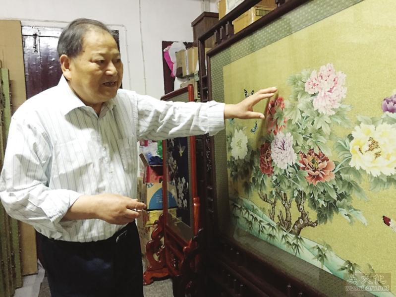 从事缂丝技艺60年的王金山,是国家级非物质文化遗产项目代表性传承人、中国工艺美术大师。在苏州临顿路的大师工作室中,这位与缂丝相守了一个甲子的老人,所思所想就是一句话:“如何站在传统的正道上,不断追求缂丝艺术的审美高度!”见多识广的王金山对宋、元、明、清缂丝作品和近代缂丝技艺颇有研究,集古今之大成,具有全面驾驭和指导专业的能力和水平,早在1982年他就首创了缂丝三异“牡丹—山茶—双蝶”图,获江苏省首届紫金杯佳品奖,现收藏于中国工艺美术馆珍宝馆;1984年首创全异“寿星图”荣获中国工艺美术品优秀作品二等奖,现收藏于中国工艺美术馆珍宝馆;2004年12月他首次为北京首都博物馆修补破损达400多处的清代乾隆缂金十二章龙袍获得了成功。