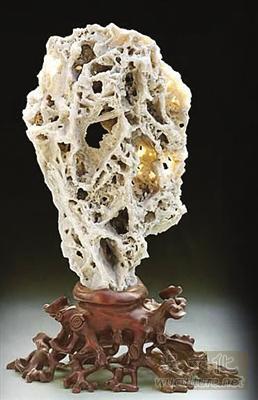 如今,一块块晶莹洁白的昆石,配上相依相衬的红木座架,更显得典雅古朴,玲珑剔透,真可谓是“极天斧神镂之巧,融自然艺术之奇”的天然工艺观赏精品。将它置于案几上能让人有“眼见尺壁,如临蒿华”的感觉。