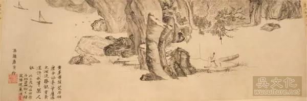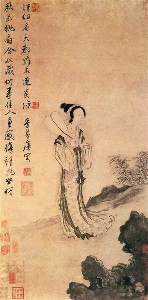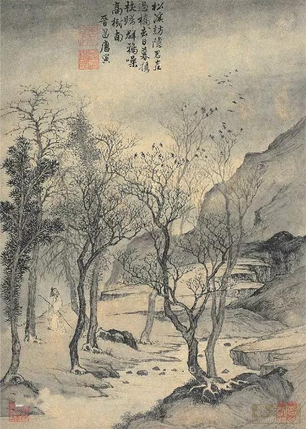 他的画,总是将诗情和画意紧密结合。绘画中的题诗与情感,紧扣画的主题和意境的创造,形象地表达出诗意,这种完美的结合,也是唐寅画的一大特点。