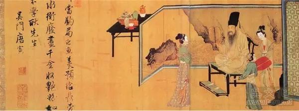 唐寅的仕女、人物画也是别具一格。他的人物画,大致可分为两类。一类线条工细、设色艳丽,色彩上有强烈的对比,上图《临韩熙载夜宴图》就是这类中的代表作之一。