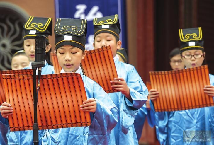 上午9时30分,主持人宣布:吉时已到,祭祀仪式开始。姑苏区委副书记王俊敲响了文庙大钟。随后,浑厚的钟声响起,伴随着阵阵鼓点和悠扬的吹奏乐,主持人宣布向至圣先师敬献猪牛羊三劳,这是献祭的最高规格。此后,祭祀代表依次举行了向至圣先师进馔、奠帛、献三爵、上香等仪式。