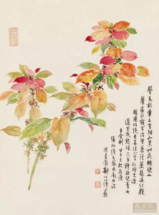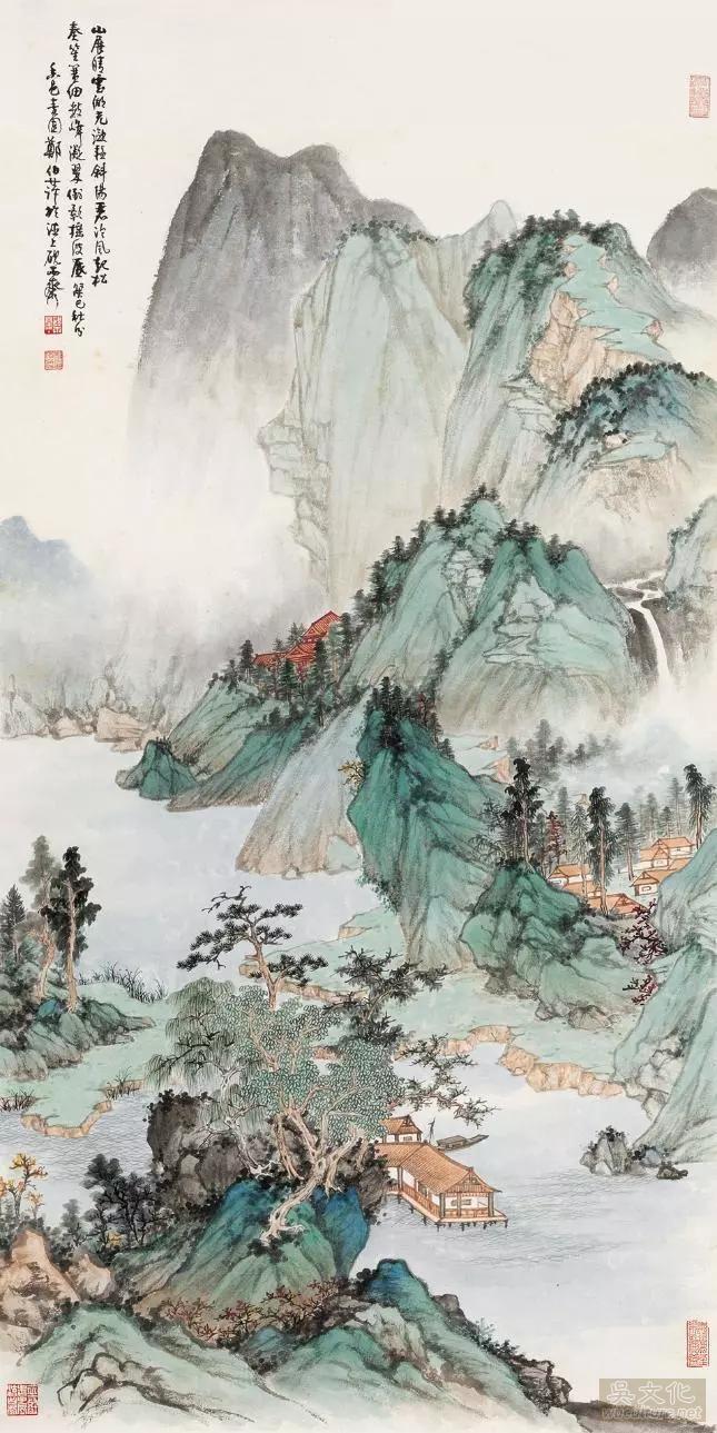 郑伯萍先生原本在同济大学学习数学,毕业后还做过一段时间的数学教师。但他幼年即嗜丹青,早年拜著名国画家凌虚为师,后“余事”成家,长期在上海大学文学院艺术教研中心任教,教授中国绘画。他的山水画师从俞子才,源出吴湖帆。吴湖帆以其过人的艺术敏悟补了中国画用色单调之短。对吴湖帆浓艳而清透,亮丽而不失雅逸的设色格法,郑伯萍颇有领悟,深得吴氏艺术精髓,同时又能在继承之中,颇有发展,成为海上吴 (湖帆) 派山水的优秀传人。郑伯萍也酷爱中国古典文学,从小即受先秦古文、唐宋诗词的熏陶,追慕吴湖帆先生“书、画、诗、词”合而为一的风范。