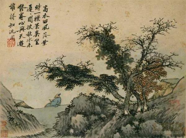 每幅画中,沈周都自题一首诗,结合画面物象抒发内心感受。