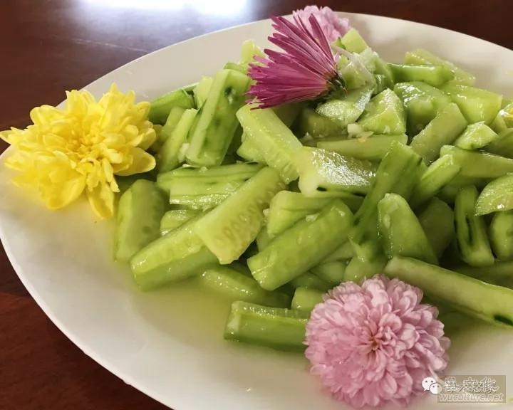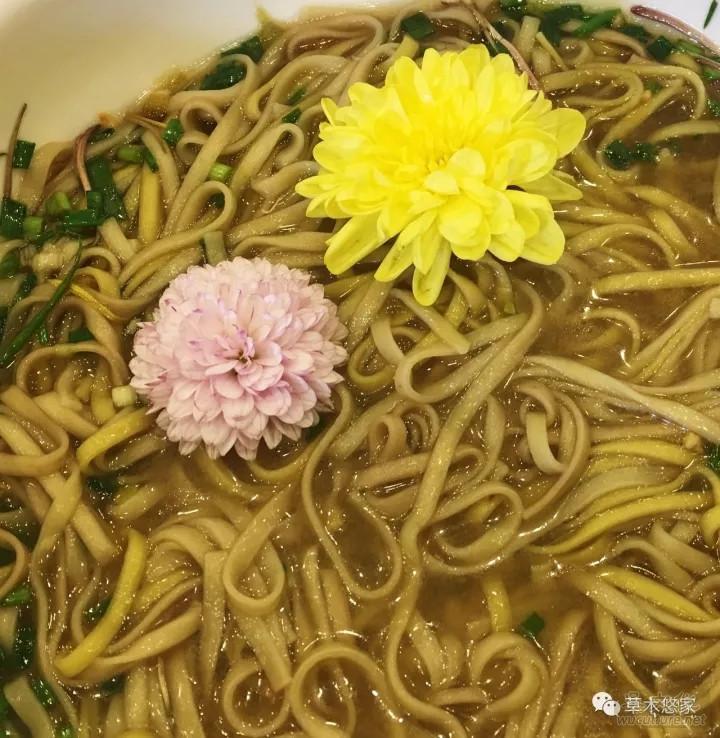 有幸尝过一餐菊花研究专家们创制的全菊宴,熏鸭、凉拌黄瓜等菜,菊花乃是点缀之物;凉拌菊花(主人称为菊花色拉)、菊花饺子、菊花面条、菊花饼则是实实在在的菊入根本、惊艳食客。诚然,菊花是无味的,靠调料撑,但那无法模拟的清香,带来的就是视觉冲击和味觉升格。
