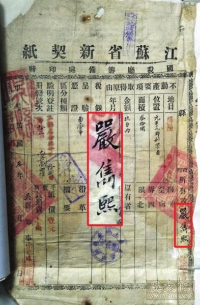民国三年(1914),严良裘的孙子严隽熙耗资白银900两,将敬彝堂散于族人的住宅回购归并,共计30间。当年,由严隽熙署名的江苏省国税厅的契纸,严家后人仍然完好地珍藏着。