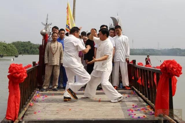 献技于佳节之时,两岸万目睽睽,有口皆碑,这一特定的环境,敦促着拳师们的自尊心,一是要有真功夫,二是所献之技不能与别船雷同。这二条无形中形成了各村庄习拳的训例。年年如此,促使江南船拳日益丰富多彩。目前江浙一带水乡流的拳术有:“小红拳”、“岳家手”“小金枪”“八虎闯幽洲”“猴拳”“醉八仙”“梅花桩”等,器械有刀、枪、剑、棍、戟、斧、鞭、叉等兵器。还有表演功力的掷石锁、那酒瓮、叠罗汉等。更有一些使稀有兵器的在船头献艺,如“木锁”,(一种木质器械,外围用铁叶镶包,二头由铁角相裹)。大小长短因人而异,是一种既能积极进攻,又能很好防御的兵器,舞动时呼呼生风。