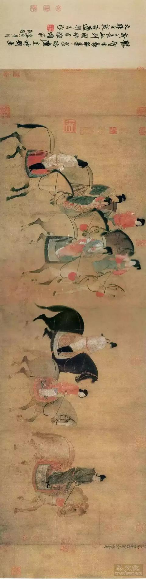 它问世后,收藏者包括赵构、赵伯昂、赵孟頫、乾隆等著名人物。在明代,它几易其主。清兵入关后一度下落不明,直到乾隆年间,才从民间收集到宫中珍藏。1900年,八国联军洗劫紫禁城,《五牛图》被劫出国外,从此杳无音讯。上个世纪50年代,它被一位寓居香港的爱国人士发现。