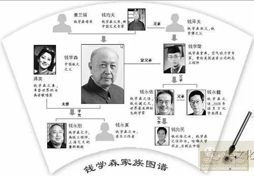 我们熟知的三钱: 钱学森属杭州钱氏,诺贝尔奖获得者钱永建是其堂侄; 钱三强乃湖州钱氏,其父是新文化运动著名人物钱玄同; 钱伟长则是无锡钱氏,与钱钟书同宗,都称国学大师钱穆为叔叔。 钱氏家族“一诺奖、二外交家、三科学家、四国学大师、五全国政协副主席、十八两院院士”。