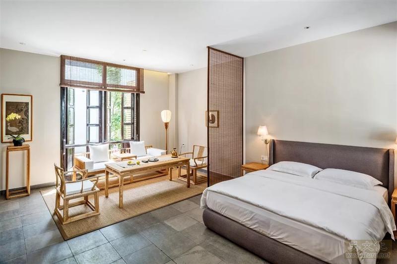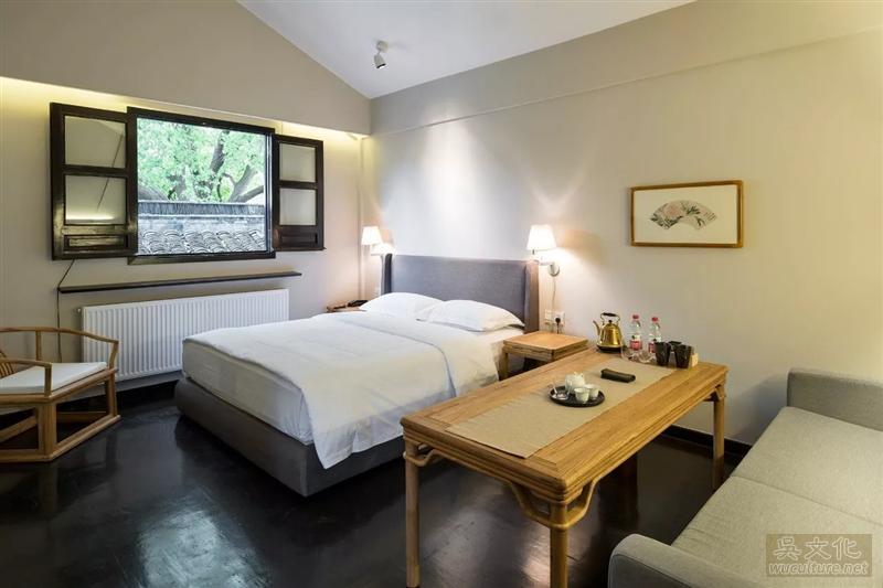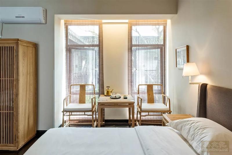 二楼辟为四种房型共13间景致客房,俯瞰院景,树影婆娑,屏息凝神,清韵幽然而自得。