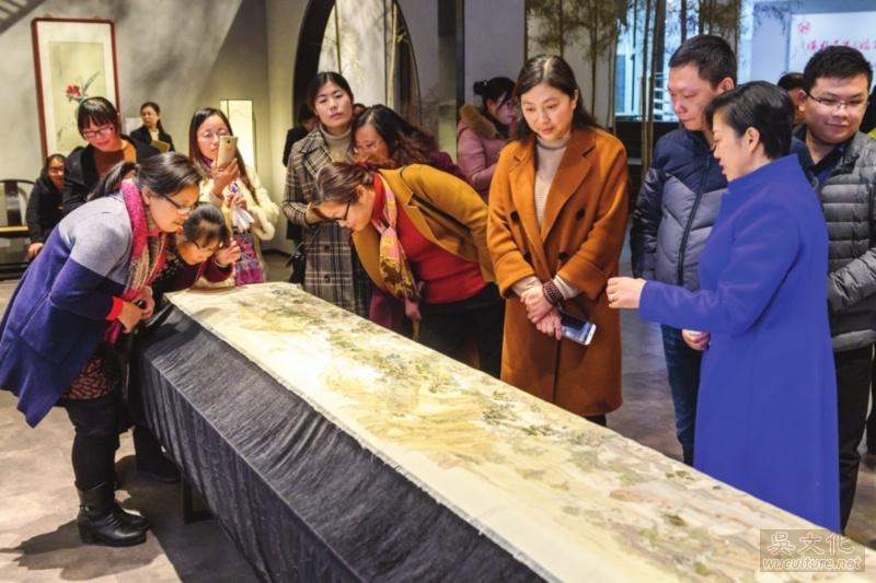 “作品从2009年开始构思策划,并制作超大规格的缂丝机,再经过设计、临稿、配色、匹丝和编制等工序,由18位缂丝艺人潜心创作,作品完成前后耗时达6年时间。”陆美英介绍。她们凭借着精益求精的“工匠精神”与坚忍不拔的非凡毅力,终于创造出了这一表现手法独一无二、创作难度独一无二的中国缂丝巨作。