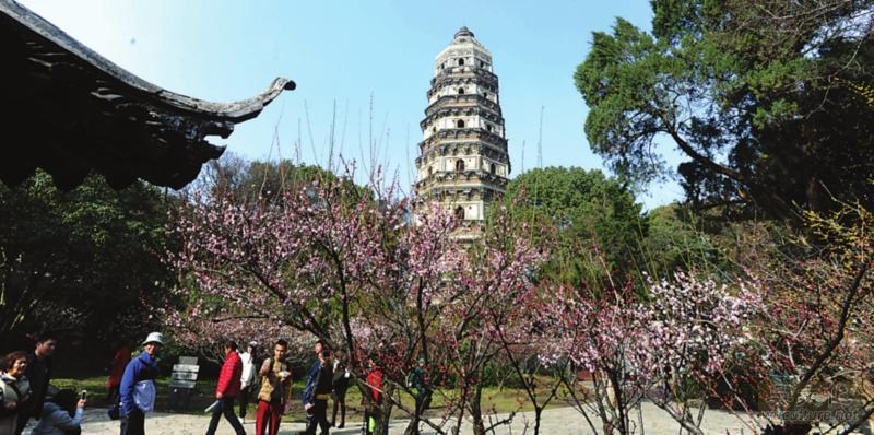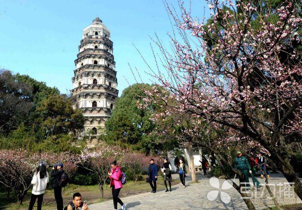 昨天,苏州天气转暖,虎丘山景区的梅花竞相绽放,吸引了众多游人前来踏春。