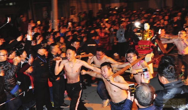 “抬猛将”很多地方都有,不过,最具特色的要数蒋家村的“赤膊抬猛将”。不论气候如何,大汉们都赤膊上阵。