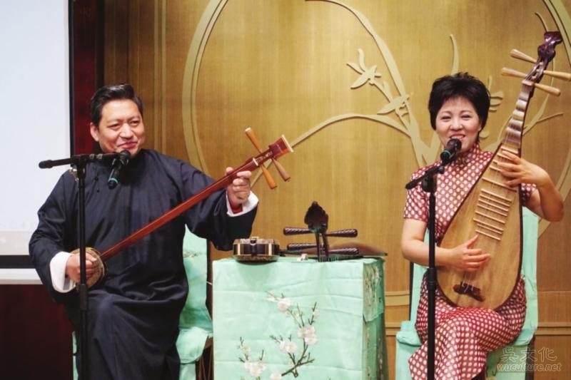 徐惠新是国家一级演员、上海评弹团副团长、上海市曲协理事,其创作的评弹作品屡获国家创作金奖。周红是国家一级演员,上海曲艺家协会理事,曾获中国曲艺界最高奖牡丹奖表演奖,多次获得各类评弹比赛优秀表演奖、金奖。在昨天的分享会上,两人联袂表演了传统开篇《西厢记·请宴》《梨花落·情深》和古诗词《望月怀远》《江城子》等,弦声婉转,歌声悠扬,引发了阵阵热烈的掌声。