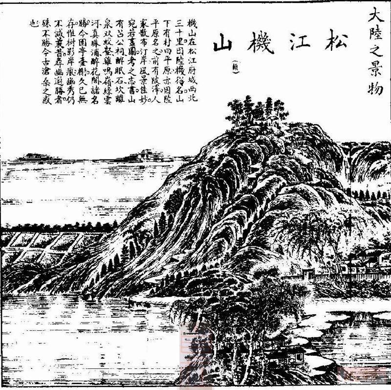 机山在松江府城西北三十里,因陆机得名。山下有村曰平原,亦因陆平原名之。前有陂泽,人家散布汀岸,风景佳妙。