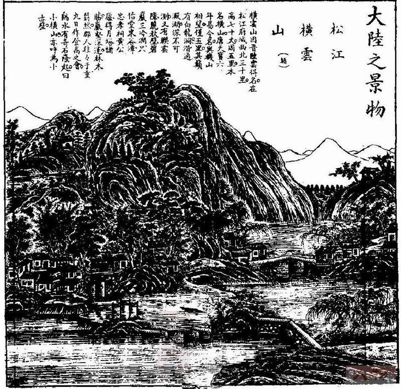 横云山因晋陆云得名,在松江府城西北三十里。高七十丈,周五里,本名横山,唐天宝六年易今名。....