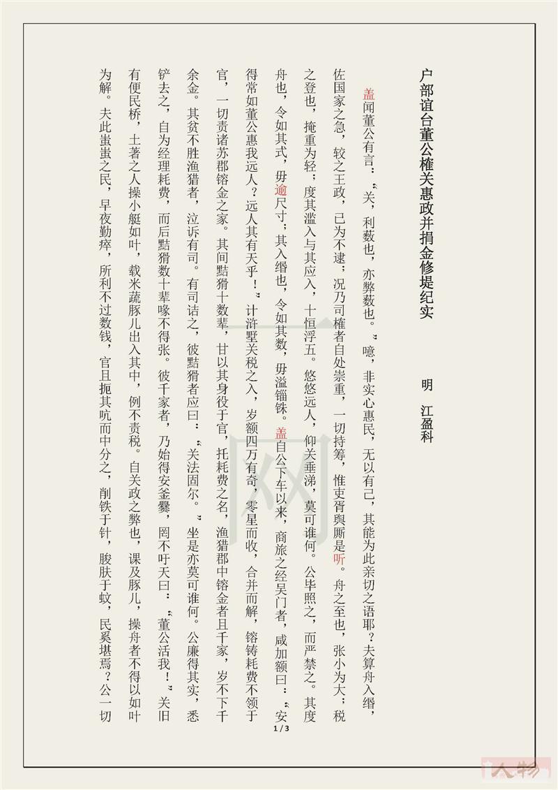 江盈科著《户部谊台董公榷关惠政并捐金修堤纪实》 3