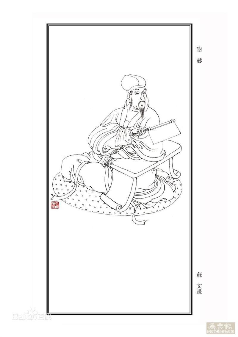 作者谢赫,南朝齐、梁人,事迹不可考。善画,尤善人物肖像。“写貌人物,不俟对看,所须一览,便归操笔”。有很强的默画能力,有一定创造精神。但由于他撰著了《画品》,更使他作为绘画理论家而享名后世。因《画品》中收有卒于梁武帝萧衍中大通四年(532)的画家陆杲,故推断该书约成书于梁武帝之时。