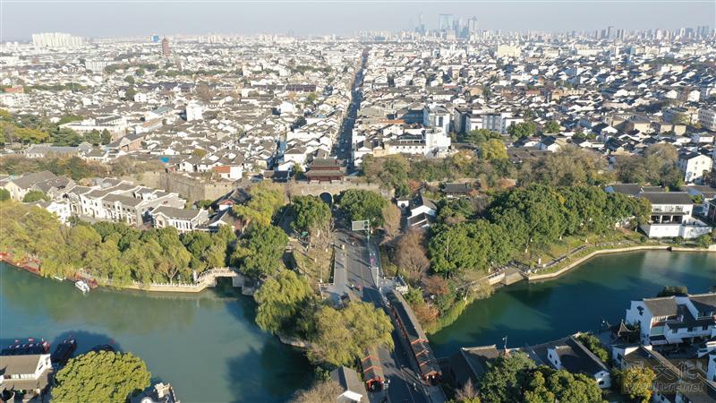 阊门:位于苏州古城西北。“阊”是通天气之意,表示吴国将得到天神保佑,日臻强盛。又因吴欲灭楚,该门方位朝对楚国,故亦名破楚门。 阊门向西直通大运河,明清时此处万商云集,南来北往的货船在此装船卸货,是《红楼梦》中描述的最是“红尘中一二等富贵风流之地”